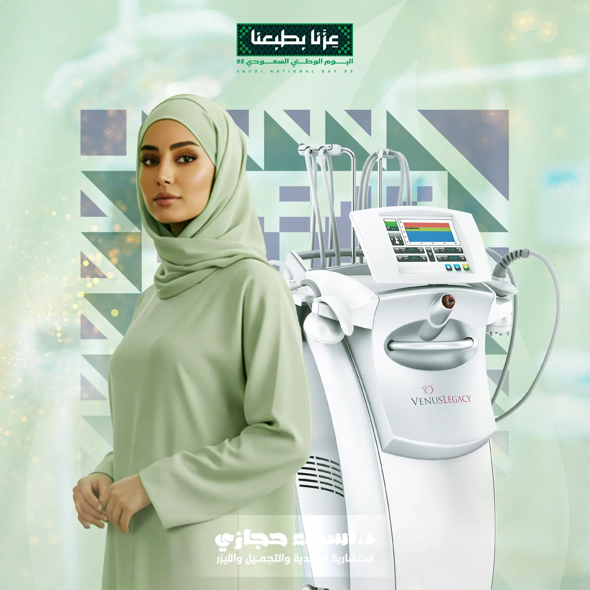 انتظري ، انتظري ليش الجراحة والتعب !!!!!هنا في عيادات د. أسماء حجازي للجلدية والتجميل والليزر وبمناسبة اليوم الوطني 95 نقدملك أحدث تقنيات نحت الجسم والتخسيس بجهاز الفينوس لاجاسي المتطور عالمياً وبدون جراحة ولا تعب ولا مجهود .